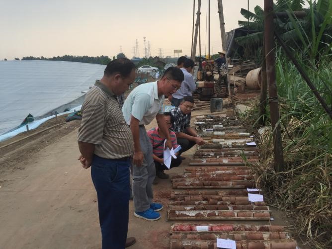 廣東省中山至開平(中山段)高速公路勘察是近年來我院承擔(dān)的線路最長的公路勘察項(xiàng)目,勘察里程長達(dá)66公里。改項(xiàng)目位于珠三角海相沉積軟土分布區(qū),巖性相對(duì)復(fù)雜,勘察、鑒別、取樣分析等難度大,我院在軟土分布區(qū)勘察經(jīng)驗(yàn)又相對(duì)較少,此外擬建高速公路部分與現(xiàn)有公路及市區(qū)快速線路共線的情況,在現(xiàn)場鉆探施工必須組織協(xié)調(diào)交通問題,以上這些困難都是增加了項(xiàng)目開展的難度,為解決問題,項(xiàng)目組提出“管理合理控制、現(xiàn)場自由靈活、安全以人為本”的原則,在加強(qiáng)協(xié)調(diào)力度的同時(shí),全力以赴趕工期、保質(zhì)量。項(xiàng)目施工高峰期現(xiàn)場鉆機(jī)35臺(tái),施工工人及技術(shù)人員近150余人,未發(fā)生一起安全、質(zhì)量事故。