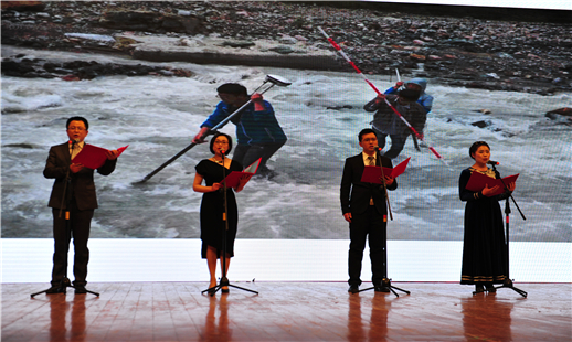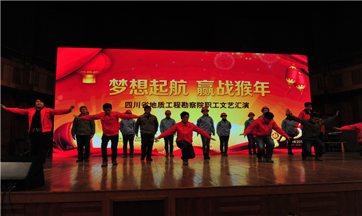 此次文藝匯演16個(gè)節(jié)目緊緊圍繞抒發(fā)地勘情懷、弘揚(yáng)地勘精神、傳播地勘文化的主題展開(kāi),大合唱、獨(dú)唱、小品、舞臺(tái)劇、舞蹈、武術(shù)等節(jié)目形式豐富多彩,個(gè)個(gè)節(jié)目都是精品。《水長(zhǎng)流、文永攜》、《深山營(yíng)救》展現(xiàn)了在“5.12”汶川特大地震、蘆山“4.20”強(qiáng)烈地震后該院職工奮戰(zhàn)在抗震救災(zāi)一線(xiàn)勇挑重?fù)?dān)、甘于奉獻(xiàn)的精神;《使命夢(mèng)想我和你》、《地質(zhì)隊(duì)員相親記》、《相親相愛(ài)》、《勘探隊(duì)員之歌》展現(xiàn)了地勘院人熱愛(ài)地質(zhì)事業(yè),獻(xiàn)身地質(zhì)事業(yè)的情懷;《荒野趣事》、《背起行囊》等節(jié)目原型都來(lái)源于工作場(chǎng)景,有很強(qiáng)的感染力;《追尋》、《不再猶豫》、《我的少女時(shí)代》等節(jié)目展示了我院年輕人蓬勃向上的朝氣。全場(chǎng)觀(guān)眾在兩個(gè)半小時(shí)的節(jié)目盛宴中,應(yīng)接不暇,笑聲不斷,喝彩聲此起彼伏,掌聲經(jīng)久不息。