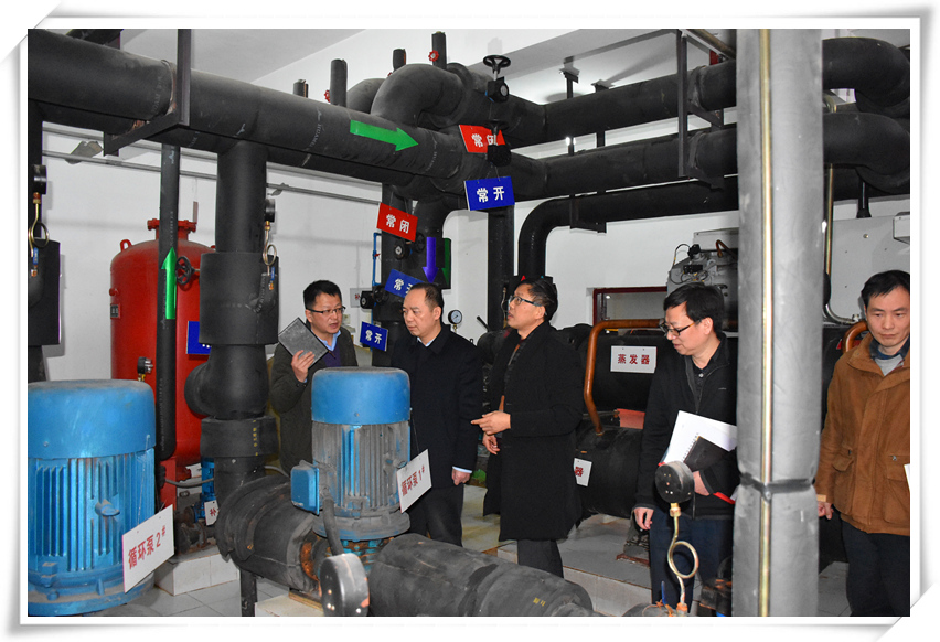 1月12日上午,成都市國(guó)土資源局黨組書(shū)記、局長(zhǎng)胡斌一行來(lái)我院調(diào)研指導(dǎo)工作,詳細(xì)詢(xún)問(wèn)并了解成都市淺層地溫能的開(kāi)發(fā)利用情況。在院領(lǐng)導(dǎo)的陪同下,胡斌局長(zhǎng)一行參觀考察了我院設(shè)計(jì)建設(shè)的省級(jí)可再生能源公共建筑示范工程——成都水文隊(duì)科研用房地源熱泵中央空調(diào)工程。