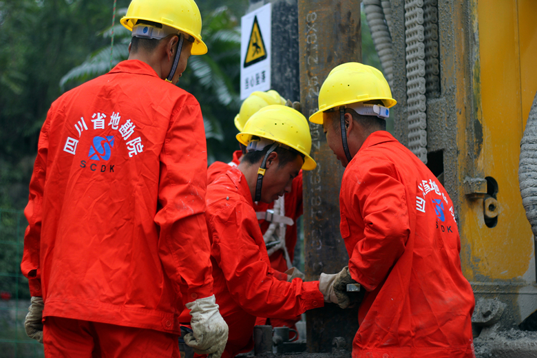 為了高質(zhì)量、高水平、按期圓滿完成所擔(dān)負(fù)的科研任務(wù),我院組建了技術(shù)實(shí)力強(qiáng)勁的科研、施工隊(duì)伍,并力求在多項(xiàng)技術(shù)研究、施工工藝、儀器配備上提升科技含量,取得進(jìn)一步的創(chuàng)新突破。在技術(shù)研究方面,從院屬水文地質(zhì)工程公司抽調(diào)一批長(zhǎng)期從事水文地質(zhì)工作、已經(jīng)積累了豐富經(jīng)驗(yàn)的中青年技術(shù)骨干擔(dān)綱,老專家進(jìn)行指導(dǎo)。他們著眼于國(guó)際國(guó)內(nèi)同行業(yè)最新研究成果,充分運(yùn)用最近幾年在四川石化煉廠開(kāi)展地下水監(jiān)測(cè)所取得的實(shí)踐經(jīng)驗(yàn),在對(duì)整個(gè)示范區(qū)6534平方公里內(nèi)頁(yè)巖氣井場(chǎng)的水文地質(zhì)條件進(jìn)行詳細(xì)調(diào)查的基礎(chǔ)上,結(jié)合采氣井與回注井建設(shè)運(yùn)行特征,針對(duì)巖溶地下水敏感地區(qū)、紅層砂泥巖缺水地區(qū)等不同的地下水類型區(qū)、地下水環(huán)境保護(hù)目標(biāo)等因素,反復(fù)分析研究,篩選出3個(gè)典型井場(chǎng)作為地下水監(jiān)測(cè)示范平臺(tái),順利完成了第一階段的環(huán)境水文地質(zhì)勘查及監(jiān)測(cè)井布置、成井參數(shù)設(shè)計(jì)方案。在監(jiān)測(cè)井施工方面,他們著眼于環(huán)境保護(hù),著眼于推廣應(yīng)用由省級(jí)地勘單位發(fā)展能力提升專項(xiàng)資金購(gòu)買(mǎi)的XFS-600履帶式多功能水井鉆機(jī)(全液壓潛孔錘鉆進(jìn)鉆機(jī)),配套高壓清洗機(jī)及世界領(lǐng)先技術(shù)的美國(guó)壽力空氣壓縮機(jī),按照安全文明工地標(biāo)準(zhǔn)組織施工,同時(shí)與傳統(tǒng)回旋鉆機(jī)、CZ系列沖擊鉆機(jī)進(jìn)行大氣揚(yáng)塵污染程度、場(chǎng)地泥漿污染程度、施工進(jìn)度、施工成本等對(duì)比研究,為今后更加廣泛使用先進(jìn)設(shè)備、環(huán)保工藝,以及節(jié)能減排、降耗增效提供基礎(chǔ)資料。在監(jiān)測(cè)儀器配備方面,他們著眼于引進(jìn)國(guó)際上性能穩(wěn)定、參數(shù)較多、性價(jià)比最優(yōu)的在線監(jiān)測(cè)儀器,研究使用太陽(yáng)能裝置作為監(jiān)測(cè)儀器動(dòng)力,使用互聯(lián)網(wǎng)作為單位及管理研究人員專門(mén)接收終端,在整個(gè)體系中完全實(shí)現(xiàn)地下水水質(zhì)的實(shí)時(shí)跟蹤監(jiān)測(cè)。
