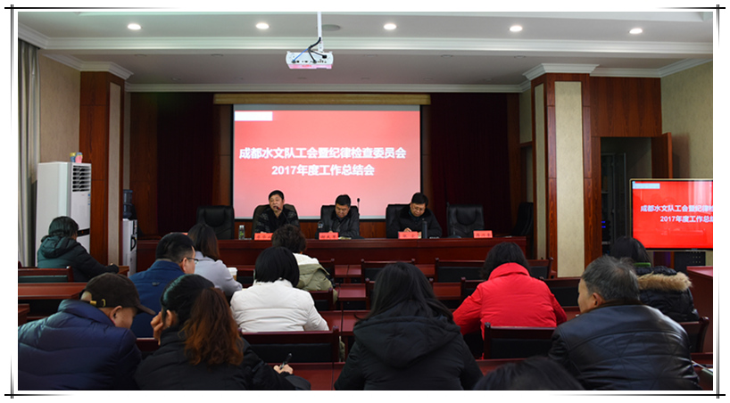 隊紀委書記、工會主席廖華成首先對水文隊2017年工會工作進行了詳細總結(jié),并對2018年工作開展做了周密的部署安排。廖書記著重圍繞黨風廉政建設和加強二級實體的民主管理等內(nèi)容,對各分工會、紀委工作開展提出了要求。