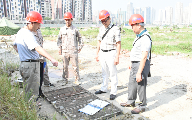 為確?!叭A府279 項目”巖土勘察的順利完成,及時向建設(shè)單位、設(shè)計單位、有關(guān)施工單位提供全面的、可靠的、科學的勘察成果,我院水文地質(zhì)工程公司先后選派五名高級工程師和其他現(xiàn)場管理、地質(zhì)技術(shù)人員組成項目組駐扎現(xiàn)場,克服工期緊、高溫暴雨以及鉆機荒等各種因素的影響,加班加點趕進度;院長安世澤、院黨委書記謝大軍以及水文地質(zhì)工程公司領(lǐng)導、技術(shù)顧問、生產(chǎn)管理部門人員等先后前往項目一線慰問作業(yè)人員并進行指導,全力協(xié)助項目部解決施工過程中遇到的具體問題。