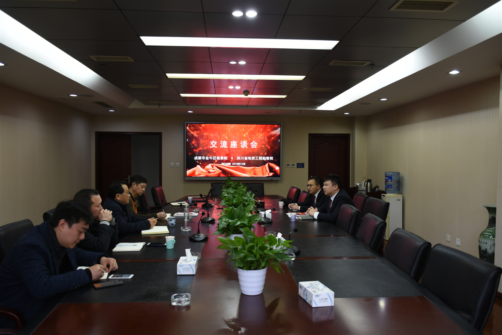 12月7日,成都市金牛區(qū)檢察院職務(wù)犯罪偵查與預(yù)防綜合科科長(zhǎng)任立君一行3人到我院交流座談,為我院提供法律咨詢服務(wù),并征求對(duì)金牛檢察工作的意見(jiàn)建議。院黨委副書(shū)記、紀(jì)委書(shū)記兼工會(huì)主席廖華成、紀(jì)檢監(jiān)察室、地質(zhì)礦產(chǎn)公司、市場(chǎng)部、綜合管理部等部門(mén)負(fù)責(zé)人參加座談會(huì)。